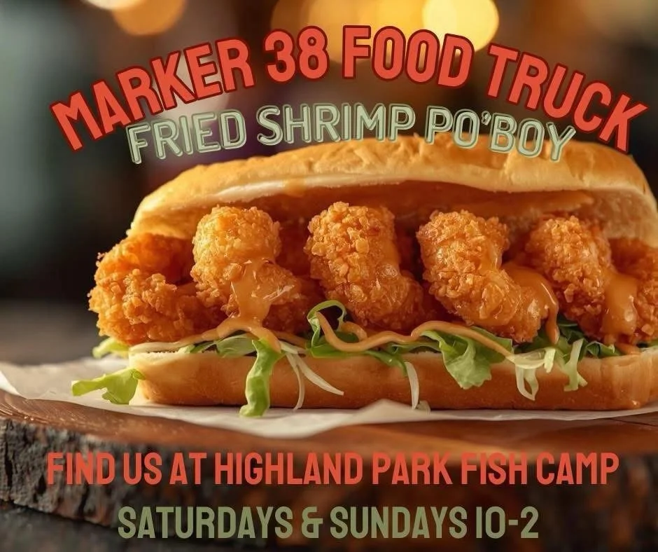 Chef Justin Meadows and his Marker 38 food truck are calling Highland Park Fish Camp home this winter, serving up delicious Southern staples every Saturday and Sunday from 10 a.m. to 2 p.m. Don’t miss the fried St. Johns River catfish sandwich with red cabbage slaw, tomato, and remoulade or the mouthwatering 1/3 lb. burger — perfect after a morning on the water!